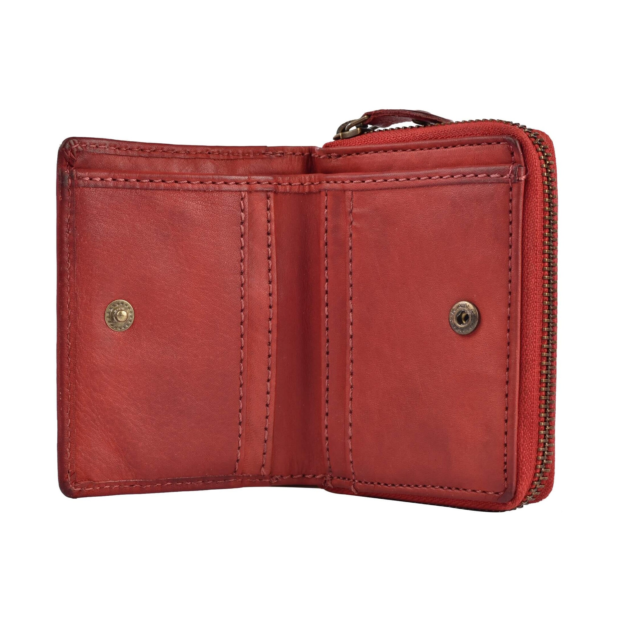 Mehr als gedacht verbirgt sich hinter diesem schicken Design. Fächer, um Bares, Karten, Quittungen etc. zu verstauen. Dennoch klein, sodass sie in jeder so kleinen Tasche hineinpasst. Und der lässige Vintage Look macht diese Geldbörse zur Alleskönnerin.