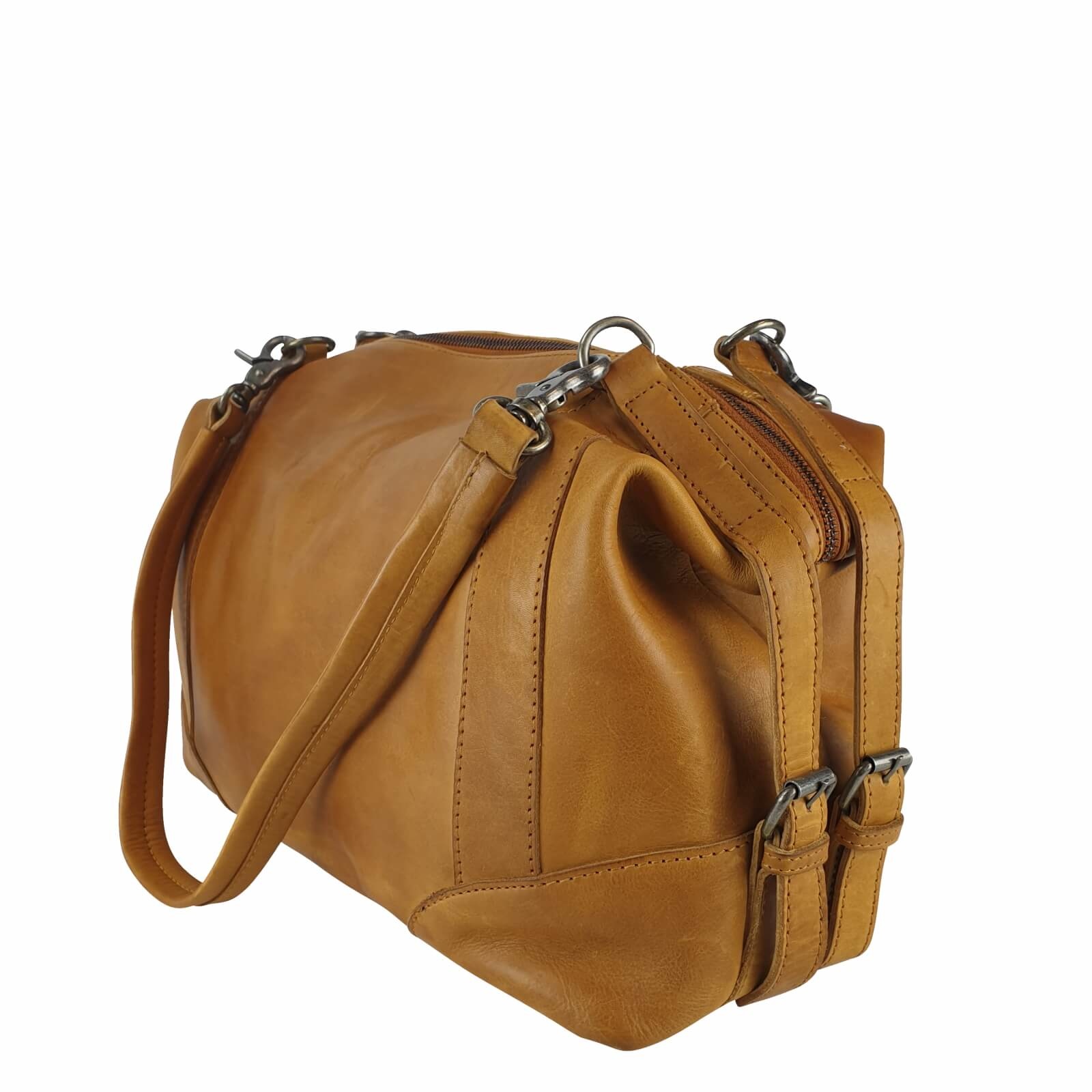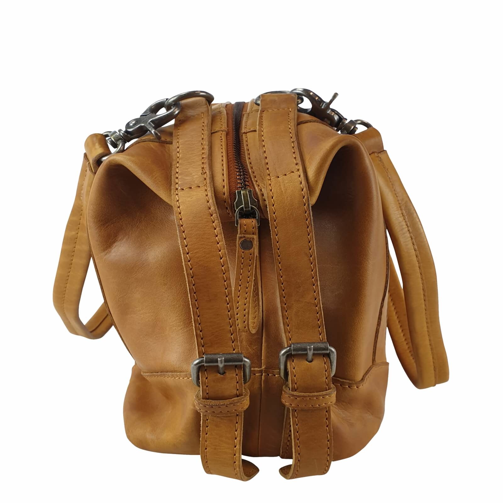 ...is the Bowling bag Meryl in soft vintage leather. The large main compartment offers plenty of space. Three small compartments (one of them with a zipper) provide order for mobile phone & Co. With the two handles Meryl can be carried comfortably in the hand or over the shoulder. And if you need free hands, you can simply use the flexible shoulder strap. Now you can start your shopping tour.