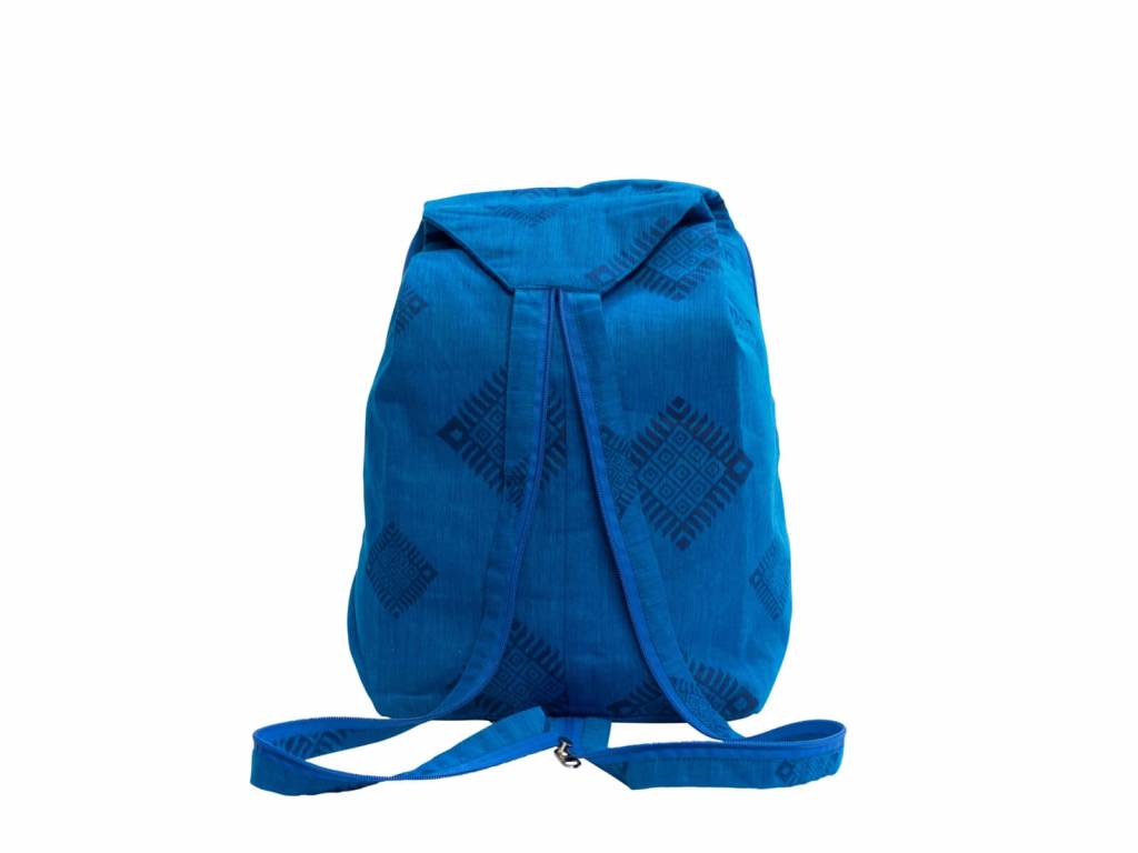 The backpack made of blue printed cotton can also be converted into a sling bag using the zipper on the shoulder strap. The beautiful and intense blue tone ensures a good mood. Thanks to its low weight and volume, backpack Hope is also ideal for packing and taking with you.
