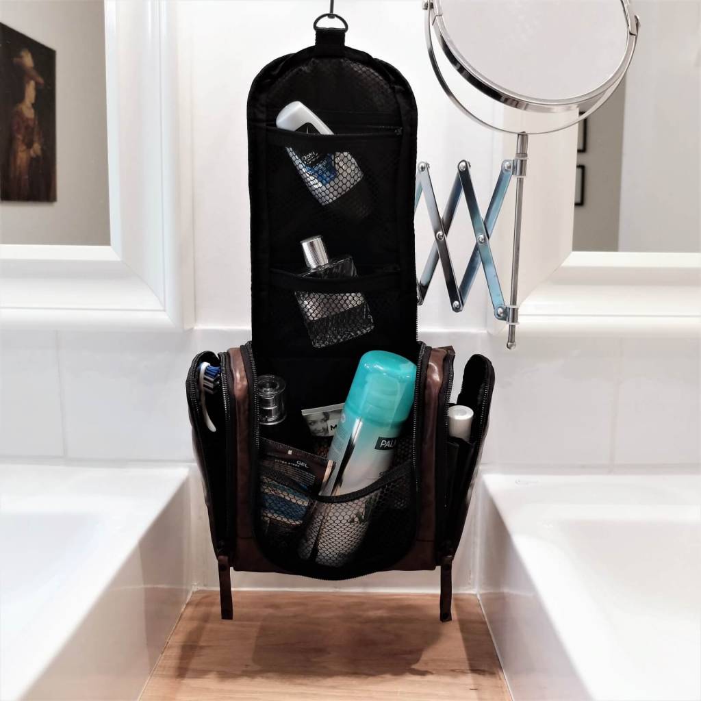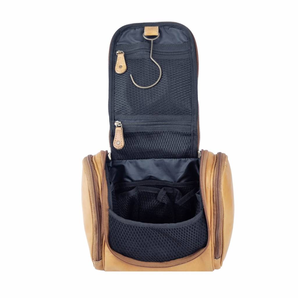 Travelbird, the noble toilet bag made of vegetable tanned vintage leather is not only practical and requires little space in the suitcase, but is also a feast for the eyes for all those who want to maintain an upscale style when travelling. Creams, gels, lotions - everything is stored clearly and safely in many large and small compartments. The mesh compartments in particular are very practical, as the contents are immediately visible. Your need for daily care outside your home would thus be covered. Is the bathroom of the hotel too small and the shelves manageable? No problem, just hang up Travelbird.