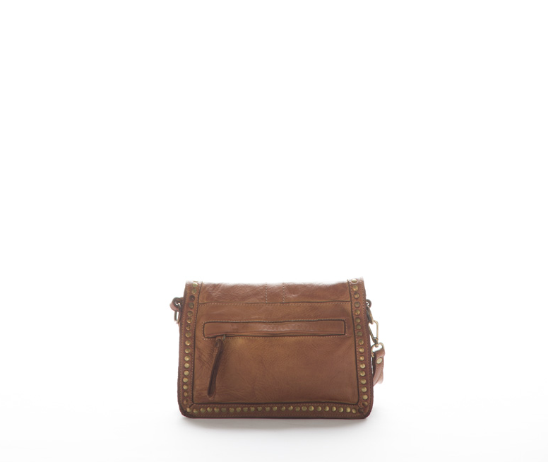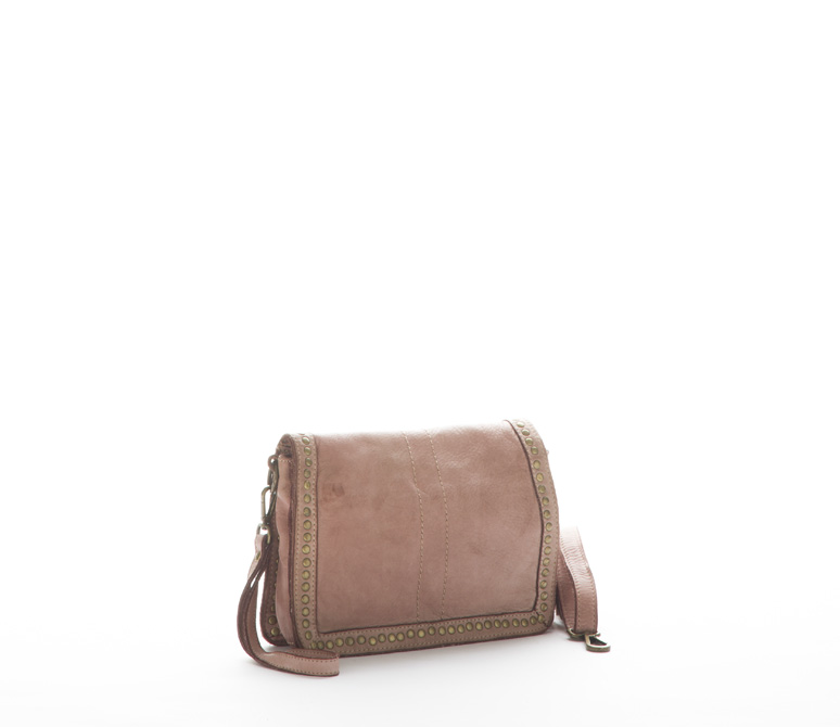 Ladies clutch made in Italy from genuine calfskin, washed and dyed, with zip and clip closure, outside pocket with zip, inside pockets, with lace and shoulder strap.